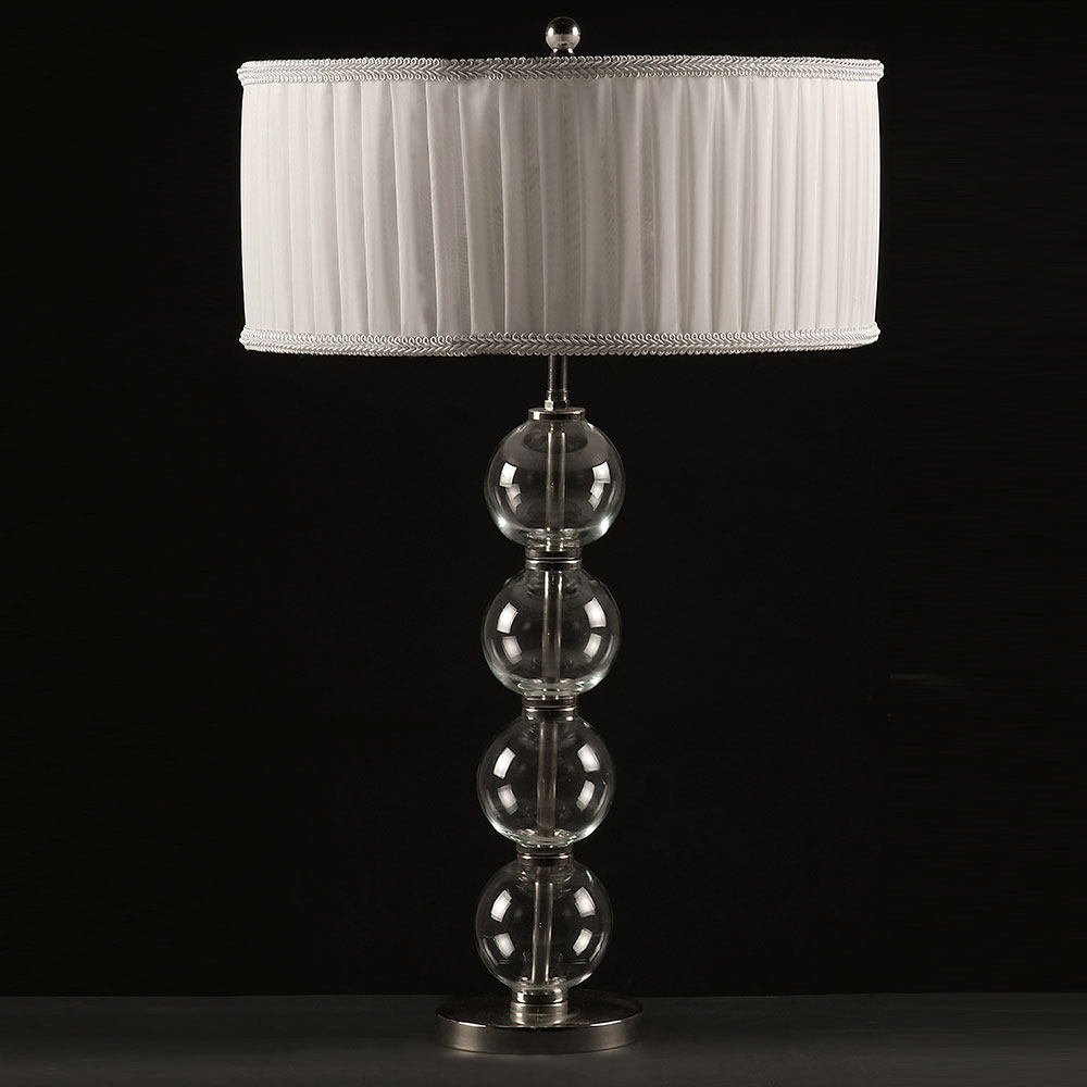 Lámpara de Mesa diseño moderno en Vidrio Terminación Niquel con Pantalla Plise blanca optativa