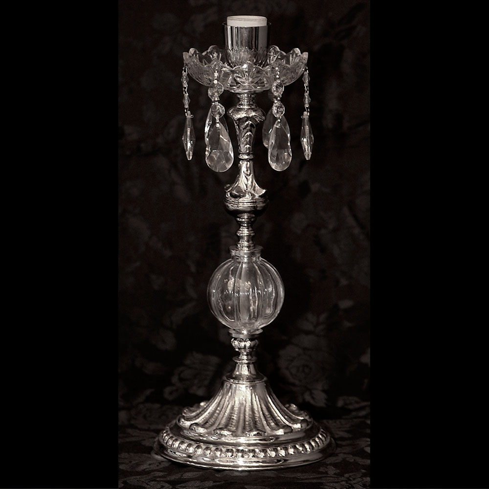 Lámpara de Mesa en fundición de Bronce y terminación Niquel con Caireles Almendras