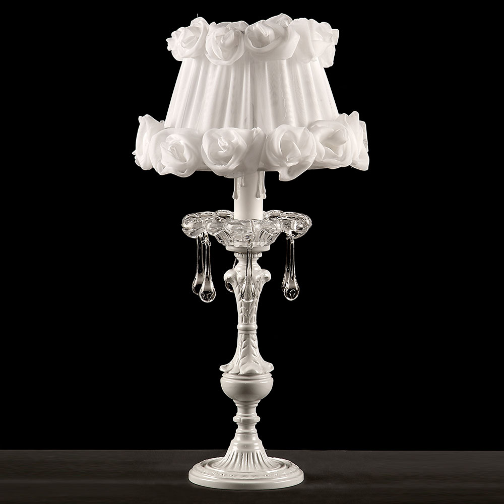 Velador de Mesa Largo de Bronce Laqueado en Blanco con Caireles en Vidrio Gotas estilo Francés